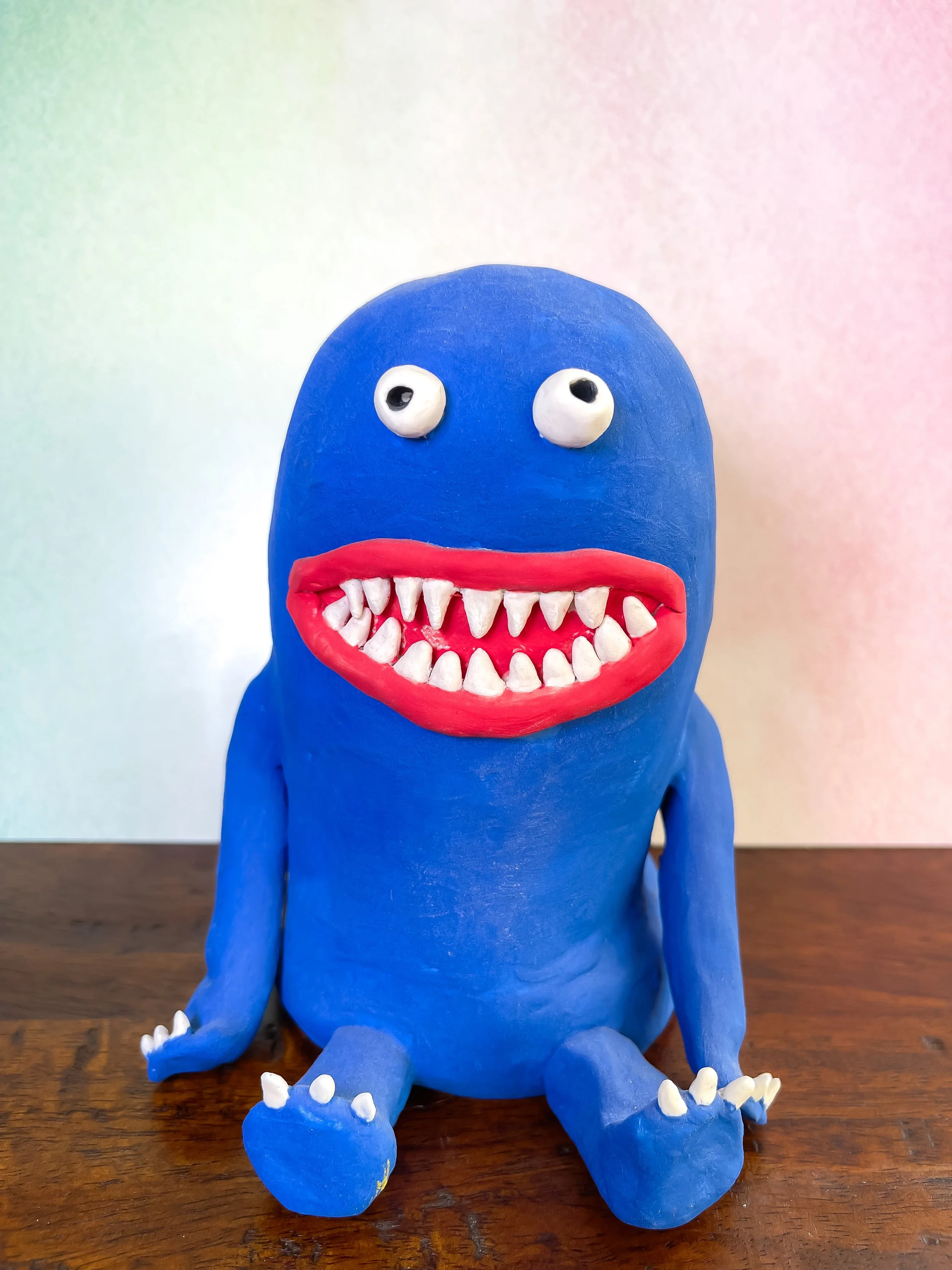 I’m a former librarian who now tells stories through clay — one weird monster at a time. Every creature I make is a little odd, a little charming, and looks like it might’ve escaped from an unsettling dream and then immediately got lost in a 90’s Nickelodeon technicolor cartoon.